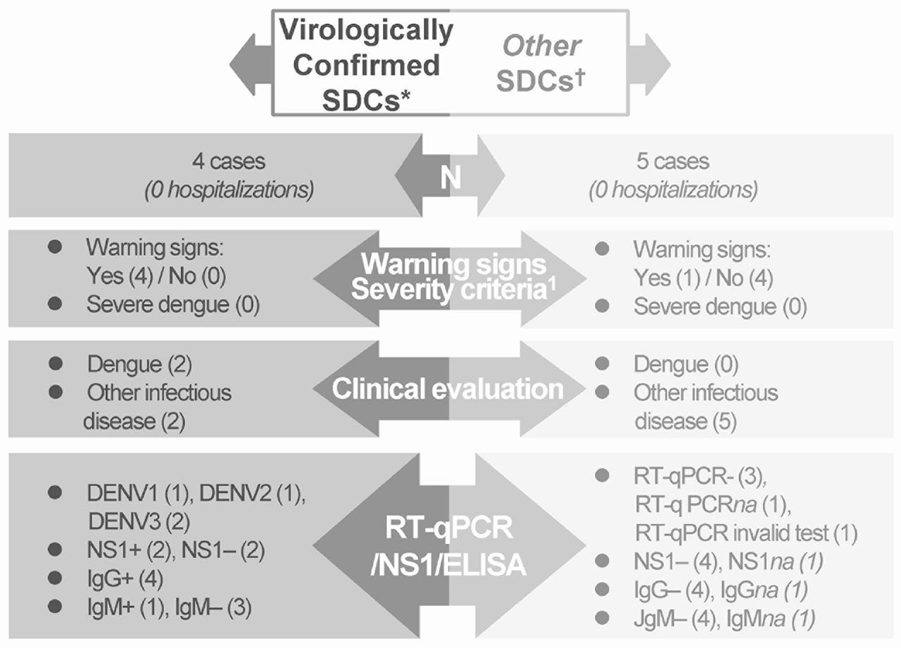 Clinical evaluation of patients with cases of dengue confirmed virologically and other SDCs