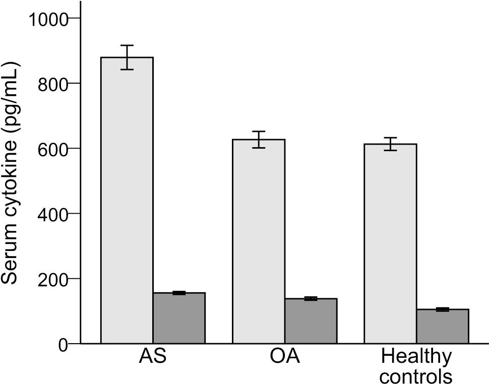 Serum levels of IL-34 and RANKL in AS, osteoarthritis, and healthy control groups