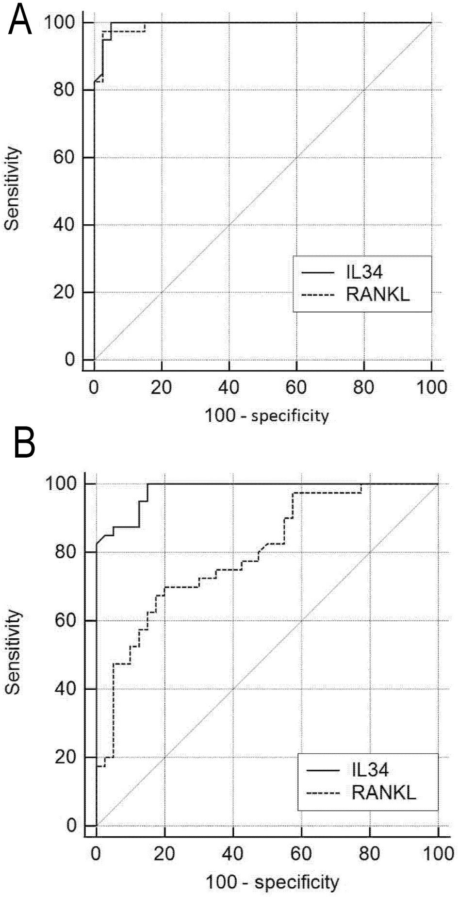 | Ultrasonography | IL-34 | RANKL | IL-34† | RANKL† |