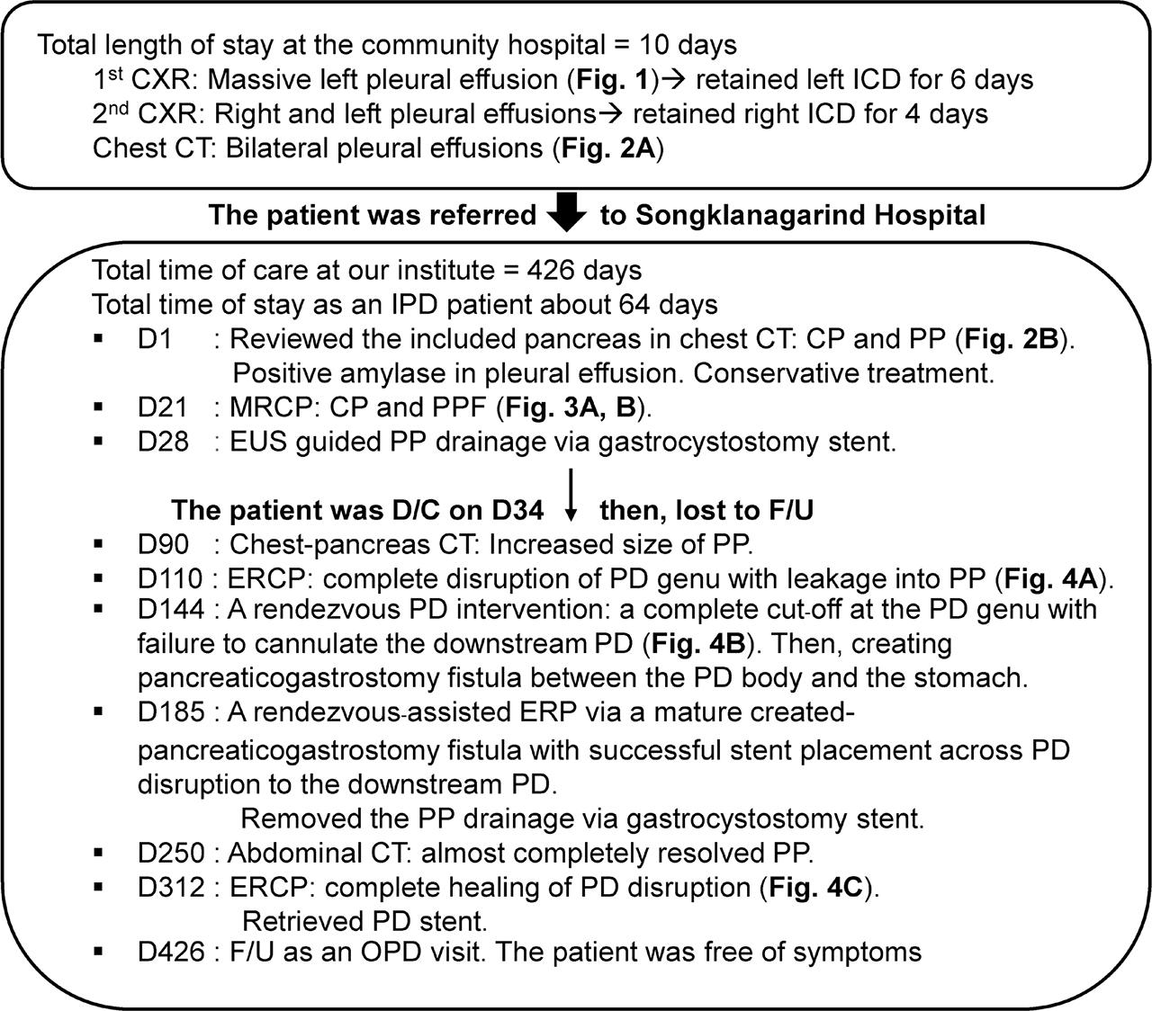 | Case | Etiology | Imaging modalities | Modalities detecting fistula | Location of fistula | Location of pseudocyst | Direct disruption of PD | Proximal stricture of PD | PD stones | Irregular dilatation of PD (CP) | Other pancreatic findings |