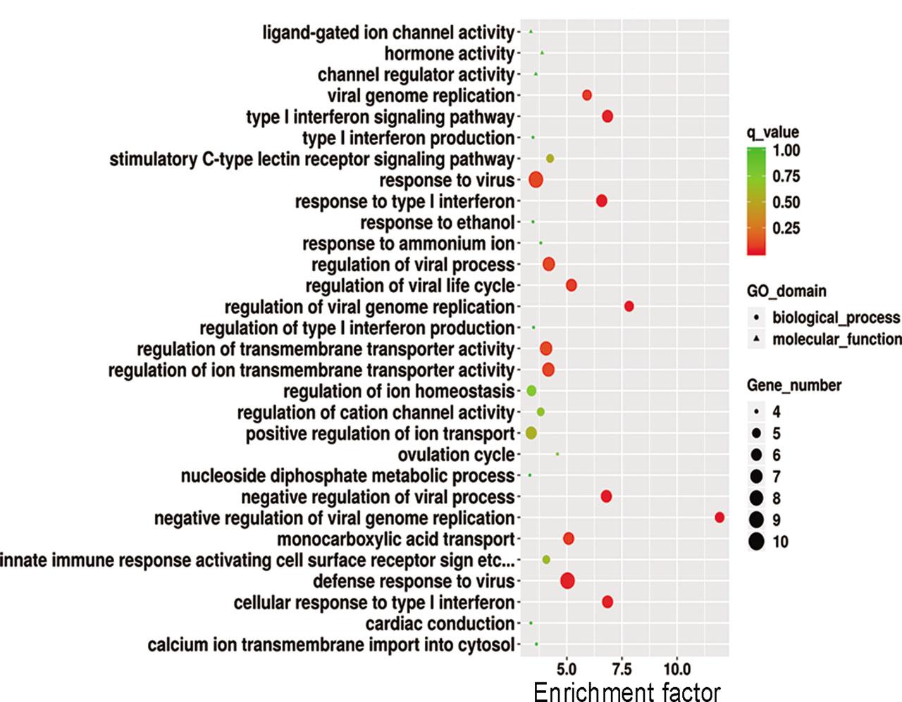 GO analysis of differentially expressed genes. GO annotations of mRNAs with top 30 enrichment scores. The circles represent biological processes; the triangles represent cell components; and the squares represent MF. GO, gene ontogeny; MF, molecular functions.