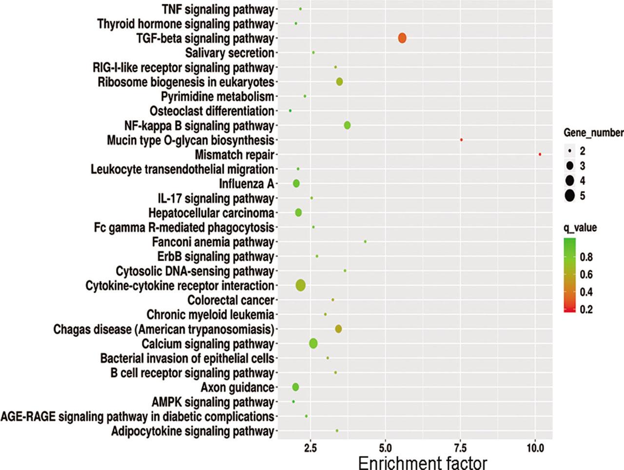 KEGG signaling pathway analysis of differentially expressed genes. Top 30 for KEGG enrichment. KEGG, Kyoto Encyclopedia of Genes and Genomes.