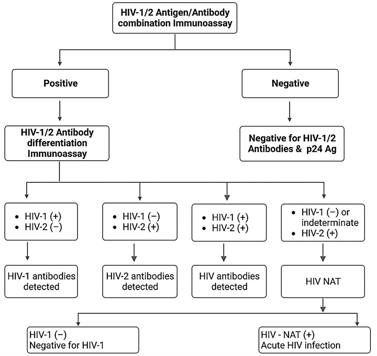 The current review was aimed to present an overview based on advances in HIV diagnosis while focusing on the latest HIV testing technologies, including HIV-specific antigens and antibodies detecting assays. The review also focuses on p24 antigen assays and other emerging molecular diagnostics, and these immunoassays have reduced the window period for detection of HIV in the acute stage of infection.
