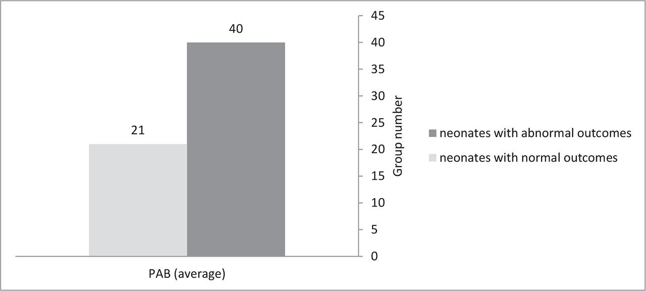 The comparison of PAB in the two groups of neonates with normal or abnormal outcomes. PAB, prooxidant–antioxidant balance.