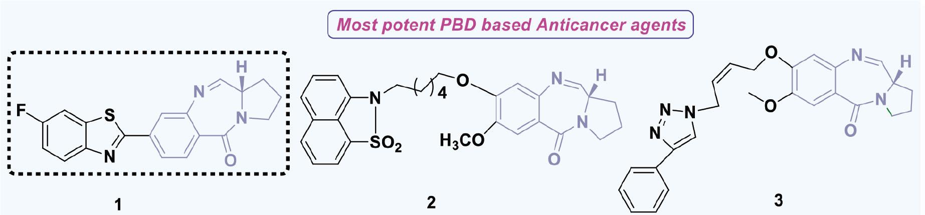 | PBDs | Anticancer | 0.5–6.6 μM | HL-60, THP-1, U-937 and jurkat leukemia cell lines | |