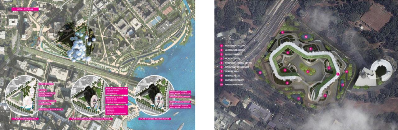Self-Sufficient Skyscraper/New York and Home Farm/Cyberjaya – overall views, authors Terreform, S*Park. Source: [18, 19]