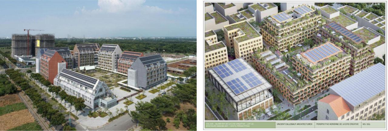Taisugar Circular Village/Tainan, author Yue-Lun Tsai and Secret Gardens/Montpellier, author Vincent Callebaut Architects – the overall view. Source: [20, 21]