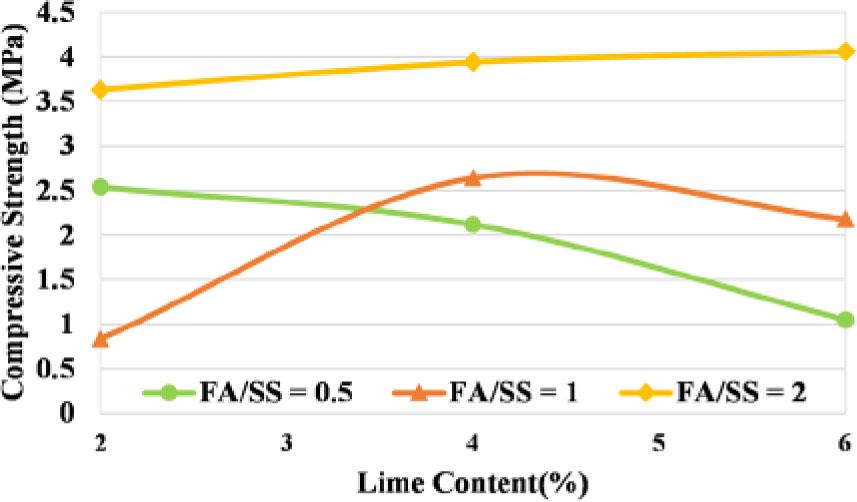 Variation of Strength with Lime Content for Different FA/SS Ratios