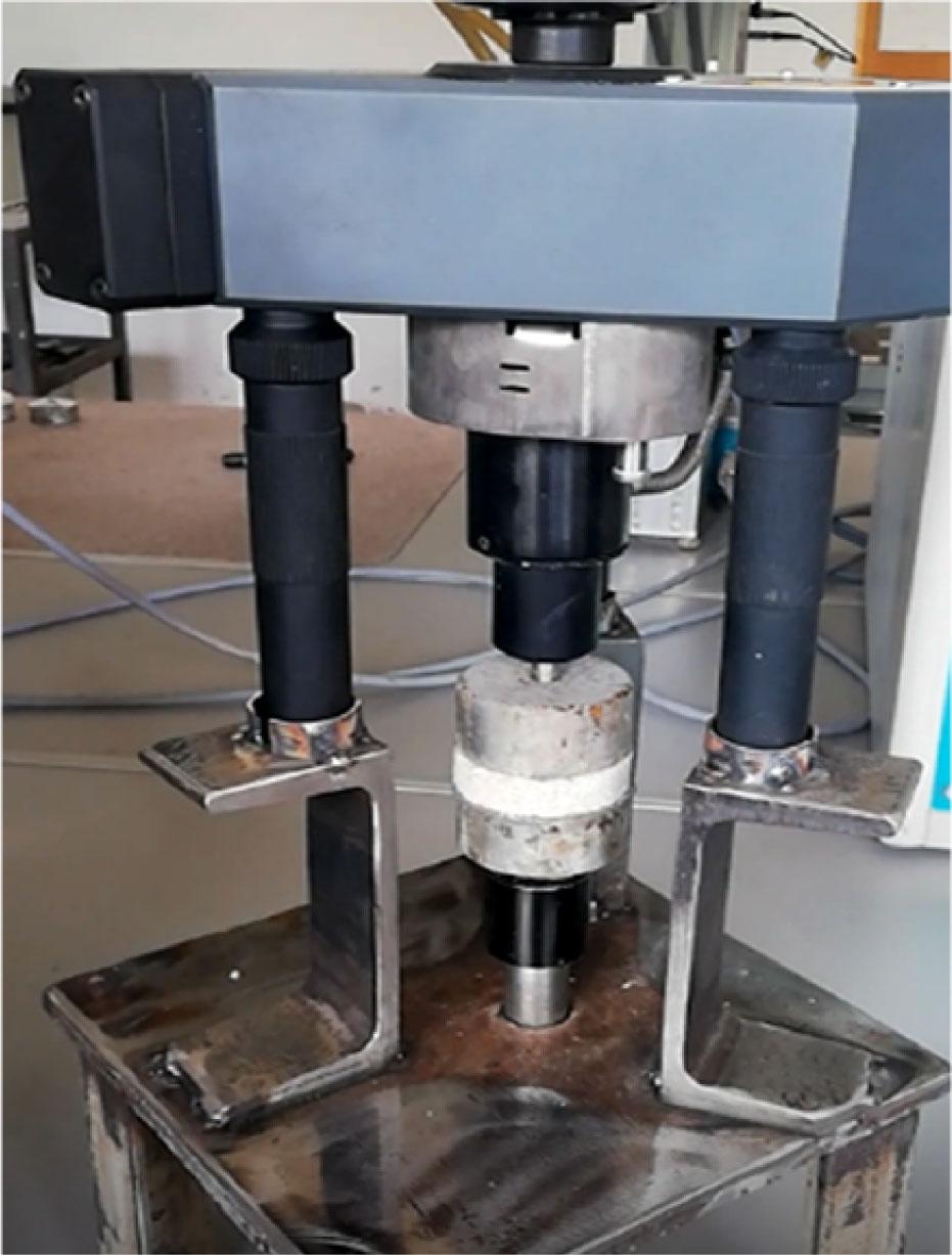 Nine plaster samples of diameter 50 mm were drilled off. Therefore, the tensile strength of the plaster was measured using a modified pull-off device (Fig. 2). The collected plaster samples were glued to the working rings of that device. The destruction of all 9 samples always took place in the plaster layer, where fracture planes of the sample could be seen.