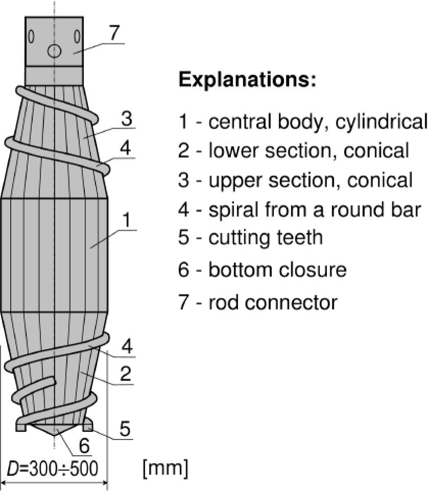 The correlations and calculation methods presented in this article refer to piles made with the D = 0.40 m shaped augers shown in Fig. 2. The proposed formulas may also be used in the case of other auger diameters, but only after appropriate recalculations (adjustments).