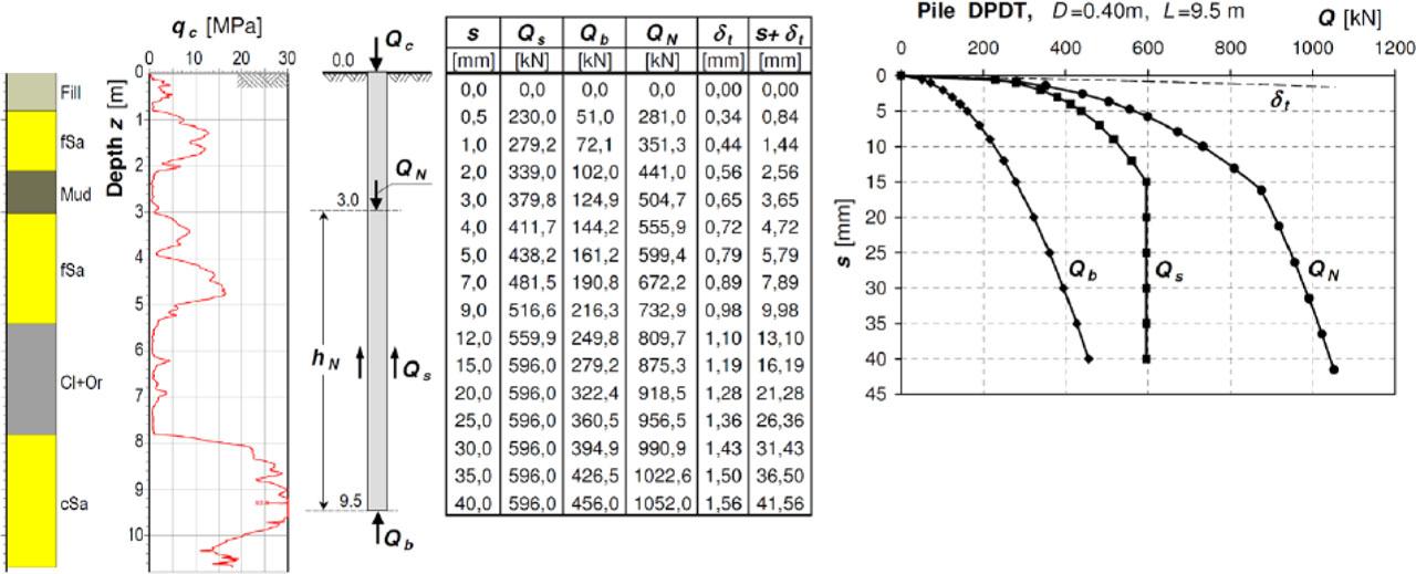 An example of calculating and determining the Q-s characteristic of a DPDT pile