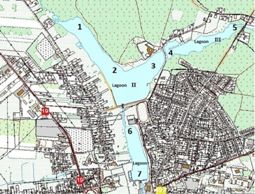 During the test were determined 7 measurement and control points, which were located in characteristic places of three reservoirs, forming Siemiatycze area. In Figure 2.1. is presented map, on which are marked water points. The selection of seven measurement points is not random, but dictated by the need to accurately capture the variability of parameters along the axis of the reservoir, taking into account its specifics. In choosing the measurement points, consideration was given to their location along the longitudinal axis of the reservoir. The measurement points were distributed along the longitudinal axis of the Siemiatycze reservoir, which includes three interconnected basins (I, II, and III). This allows for the monitoring of changes in chlorophyll “a” concentration as water flows through the entire system, from the sources to the outlet. These changes may be caused by various factors, such as differing intensities of eutrophication in different parts of the reservoir. Another factor contributing to the selection of measurement points was the representation of different zones of the reservoir: The locations of the points take into account the specifics of each part of the reservoir. The research points were placed in representative locations for various zones of the reservoir in order to provide a complete picture of the parameter diversity. Additionally, anthropogenic influences were considered: The locations of the measurement points take into account the impact of anthropogenic factors, especially near pollution sources, to assess their effect on water quality. In planning the placement of the measurement and control points, additional information about the topography of the area, the course of watercourses, etc., was also utilized, which was taken into consideration during the selection of measurement point locations. In summary, the selection of measurement points in the study was thoughtful and strategic. It aimed to achieve the most complete and reliable depiction of seasonal changes in chlorophyll “a” concentration in the Siemiatycze reservoir, accounting for its specifics as well as the influence of natural and anthropogenic factors.