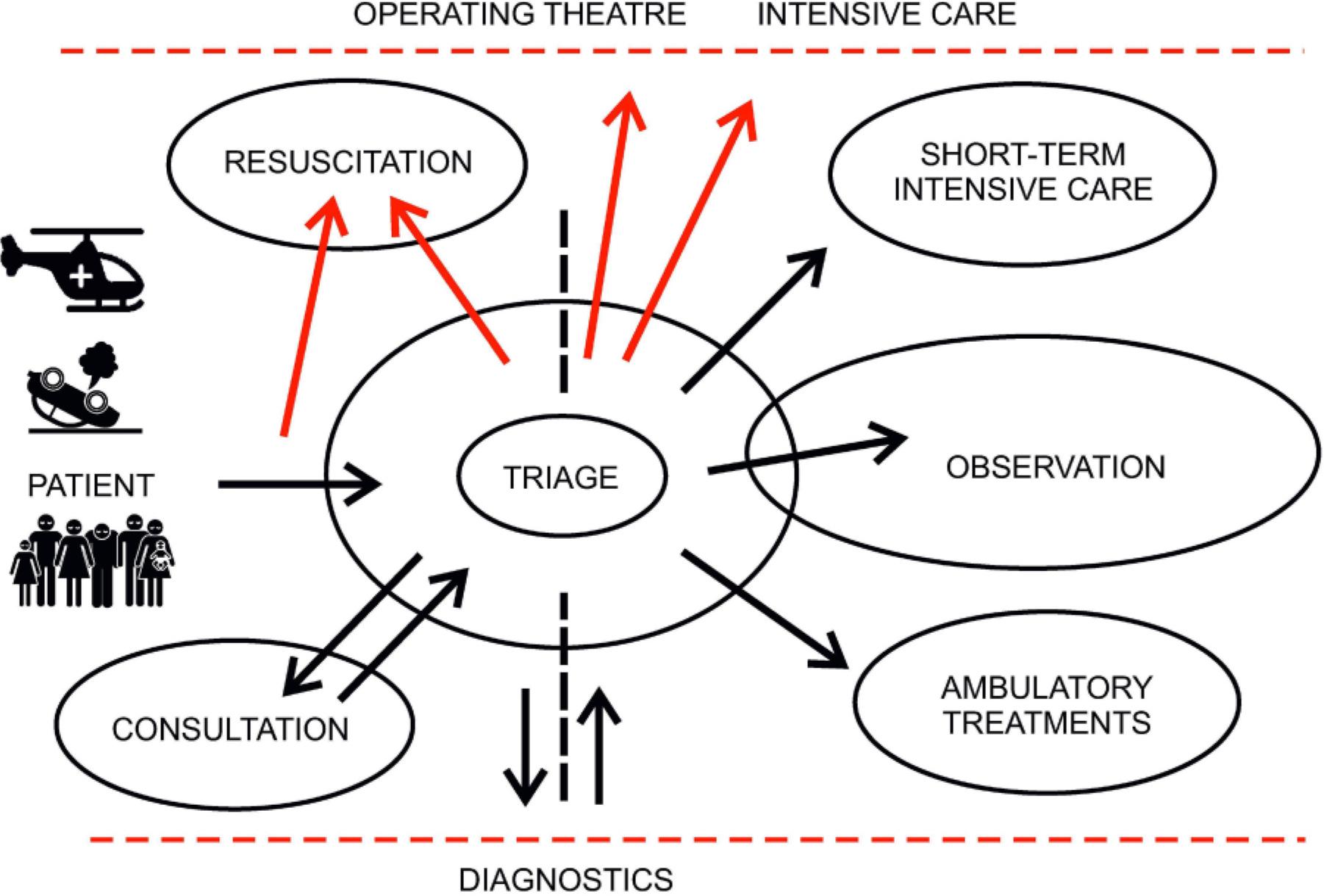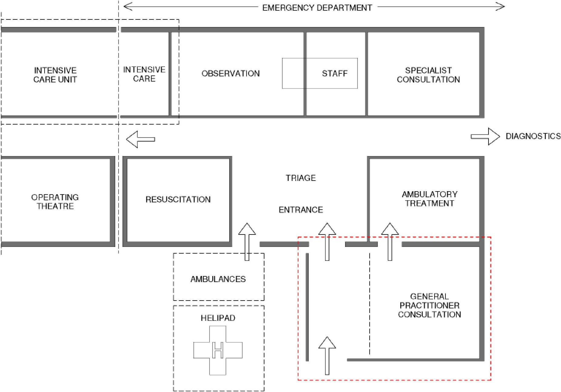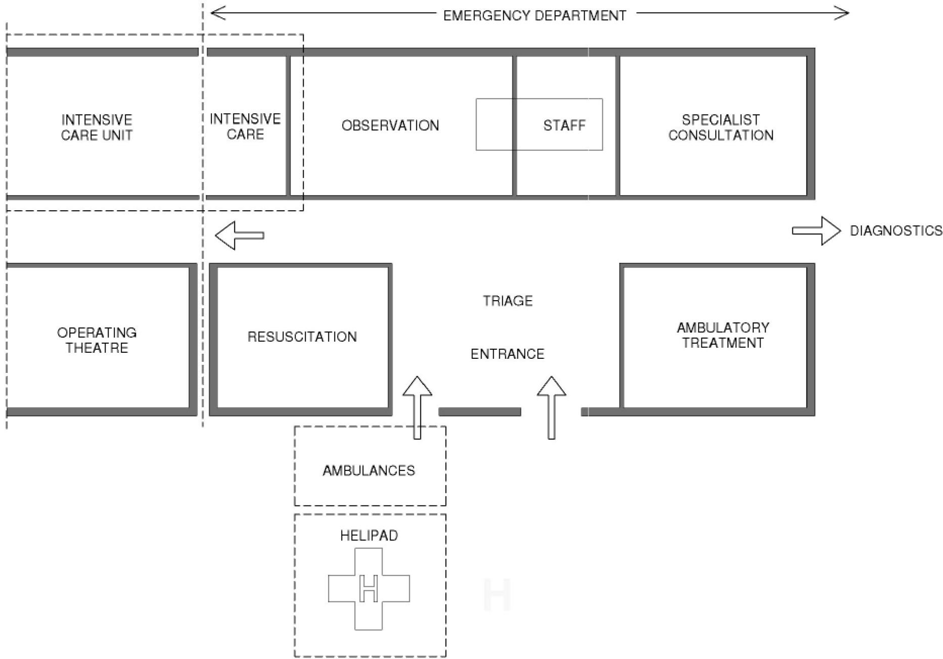 Emergency Department – functional diagram (standard spatial layout). Source: Diagram created by the author