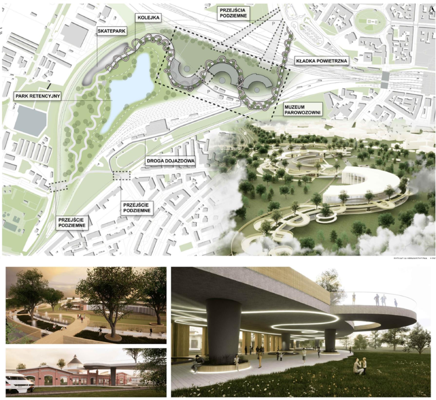 The aim of the research study: “A Vision of Multifunctional Mobility and Service Structure on the Basis of the Facilities of the Former Steam Locomotive Depot in the City of Katowice” (conducted at the Faculty of Architecture of the Silesian University of Technology, in the Department of Residential and Public Architectural Design in 2024) was to find variant options of the development of the above-mentioned facilities and their preservation as a technical heritage site by finding a new function for the object. Simultaneously, it became possible to address urban-planning issues resulting from the long-standing barrier formed by the railway tracks in this area. The revitalisation concepts attempted to reinstate the significance to the areas bordering on railway lines to enable them to become a chance of development for the city and its districts, similar to the days when they were thriving. In this way, taking into consideration all up-to-date design priorities, such areas could again become – a city-forming element.