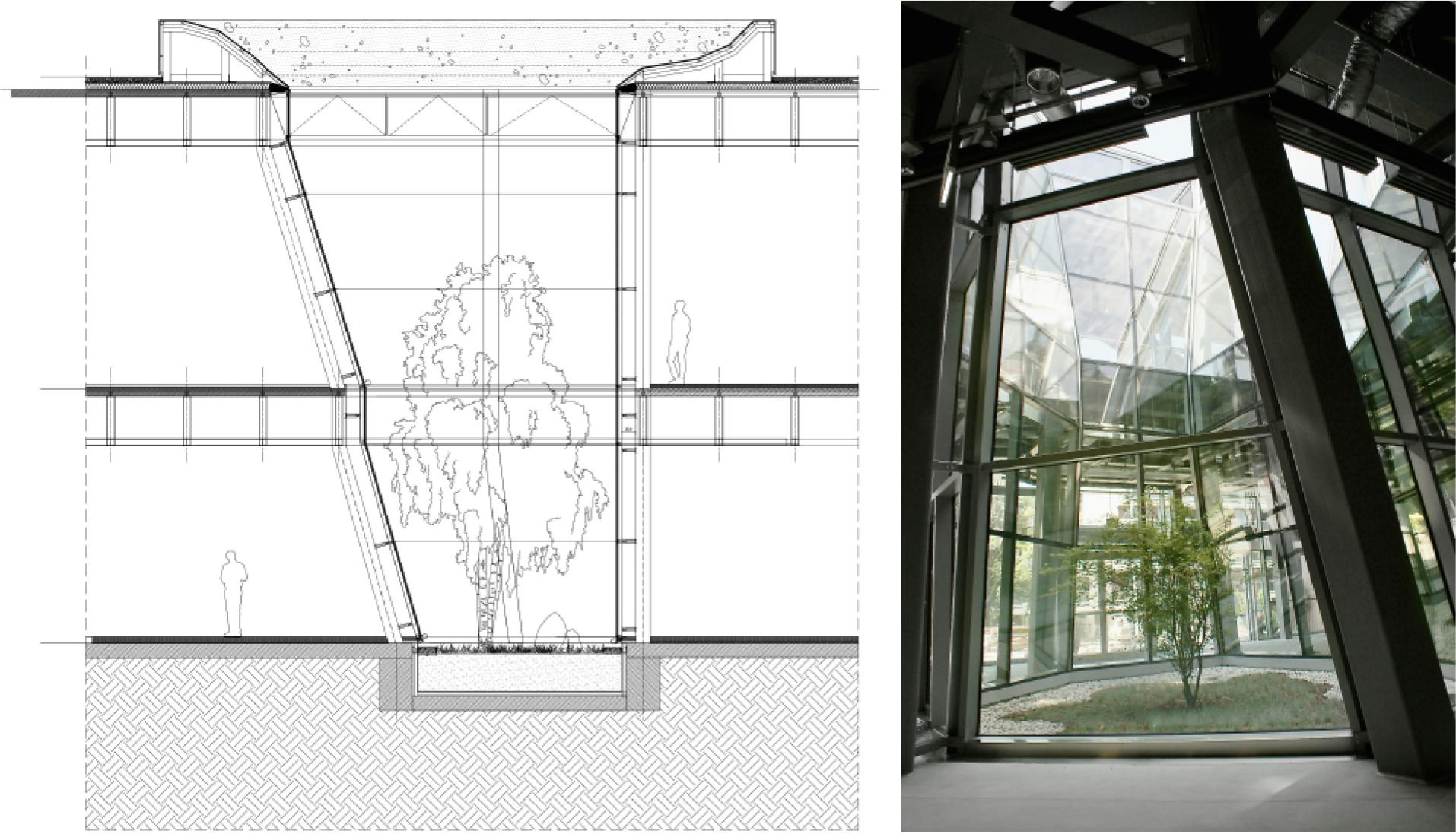 The concept of Wright’s master Louis Sullivan is even more compliant with the concept of architecture of Rar-2 Laboratory of Architecture. It is neoclassicist style but transformed into something completely different and more organic [23]. Today when we look at the drawings and models of the Copernicus Science Centre we may think not only of “tectonics of plates”, of geological perforations but also of light towers. On the other hand a light tower constitutes a basic element of earlier modernist architecture, which may be found both in works of Alvar Aalto and of Le Corbusier. It is present for instance in the monastery Le Corbusier in La Tourette. In the Warsaw design it assumes a different form as an object within space and space within an object. The patios/craters twist their form to react to the main geometries of the design, the grid of construction and the layouts of floors. This makes them look like crystals similarly to certain natural forms but in reality their shape results from purely conceptual design activity. An ideal situation is the one when what we wish to achieve in the design is something technically feasible but also in certain sense natural.
