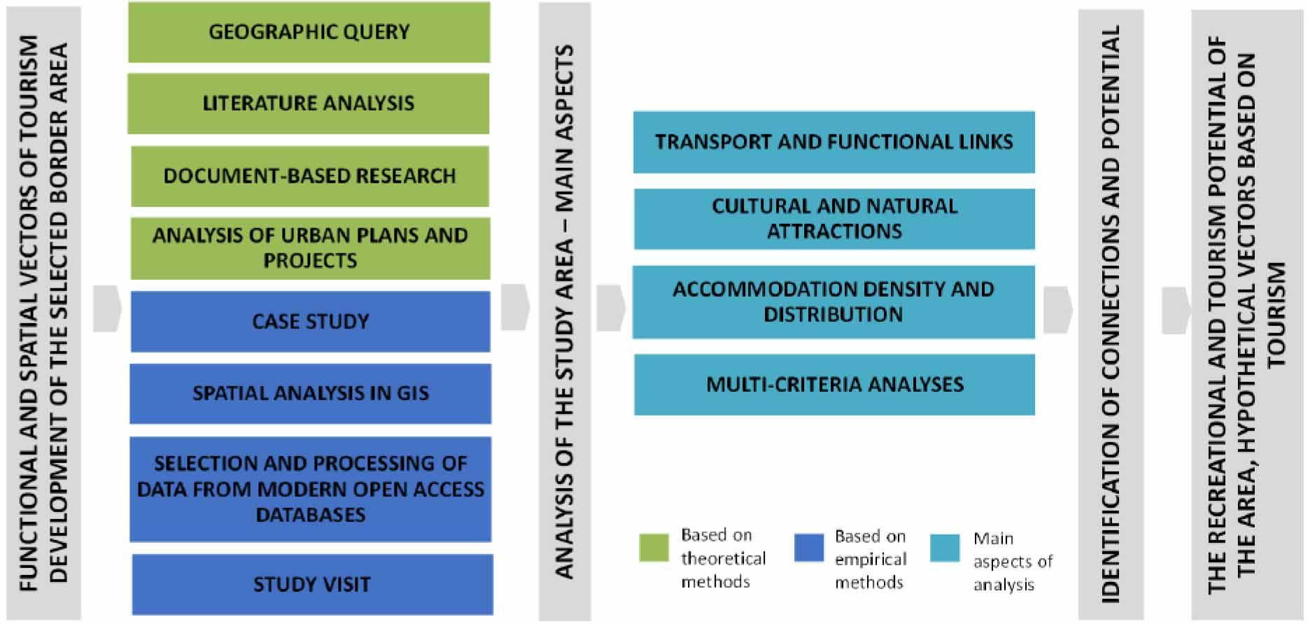 Flowchart with functional and spatial vectors of tourism and recreation enhancement for the selected border region, source: own research