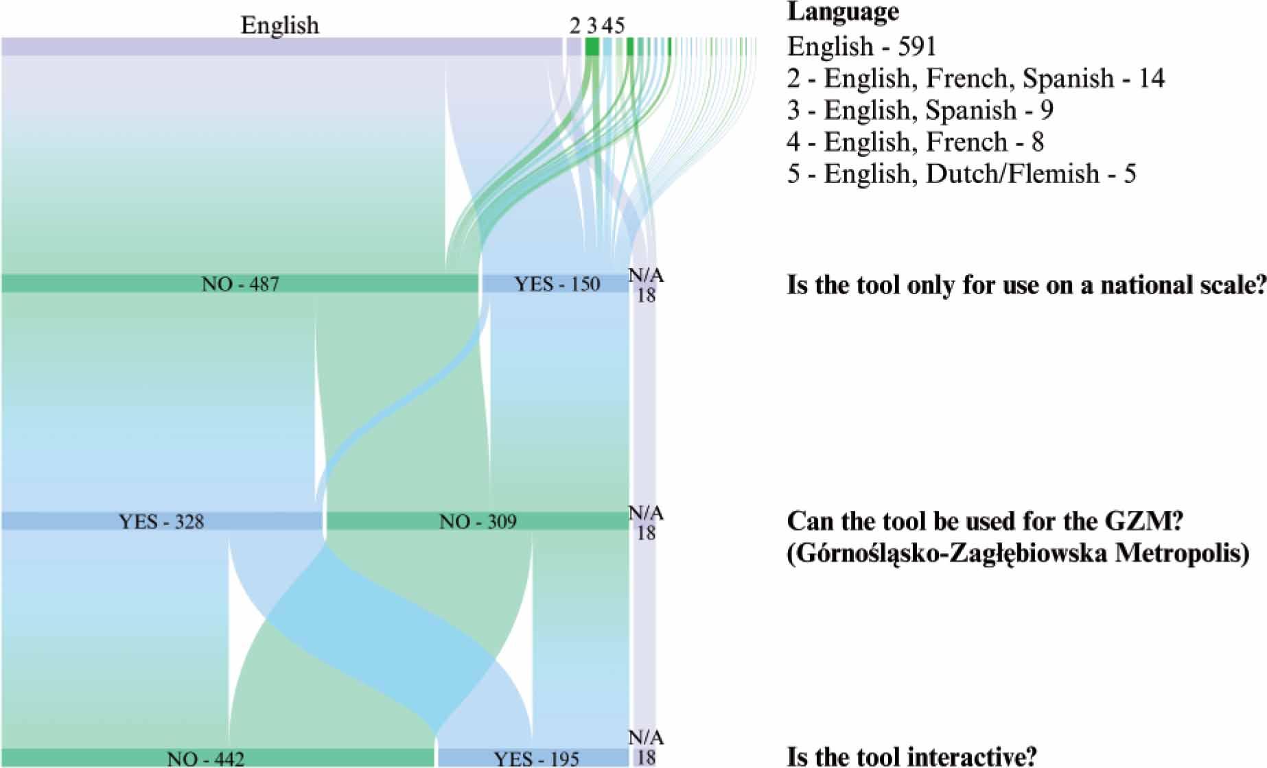The analysis showed that 400 tools among those that can be used for Poland are not aimed directly at that country, but are, e.g. global in scope. From this, there may be a risk of the tool being inaccurate when used for specific areas. Nevertheless, the indicated pool of resources may provide a starting point for stakeholders developing resources aimed at Polish users. It is also possible that some application tools could have updated datasets suitable for Polish conditions.