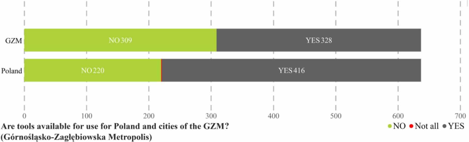 Number of tools possible to use for areas in Poland and in the cities of the GZM Metropolis, own study