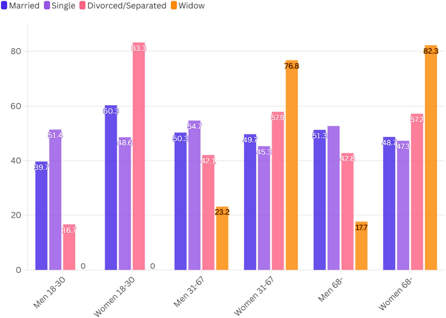 | Divorced/Separated | 0b | . | . | 0 | . | . | . | . | |