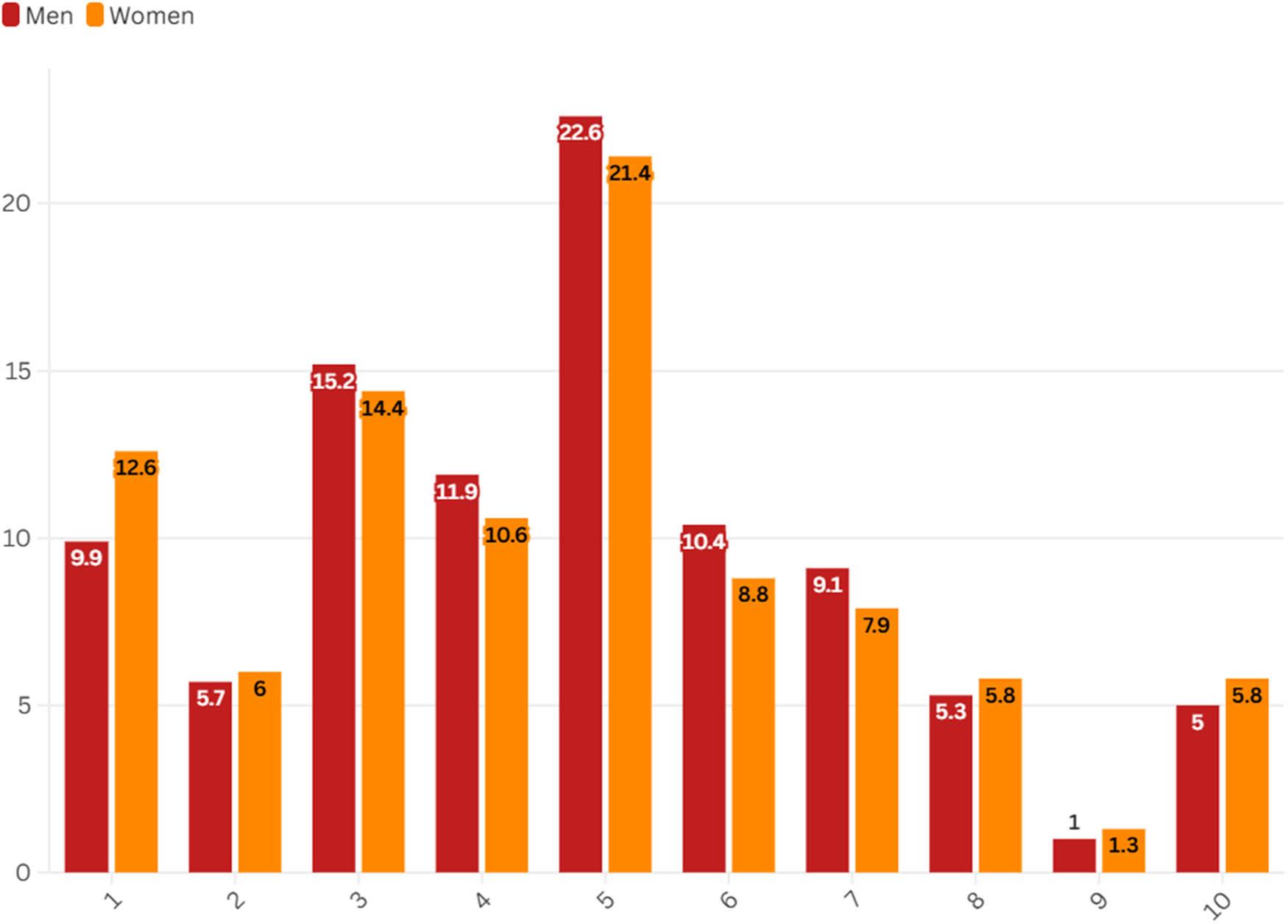 | Woman | 0b | . | . | 0 | . | . | . | . | |