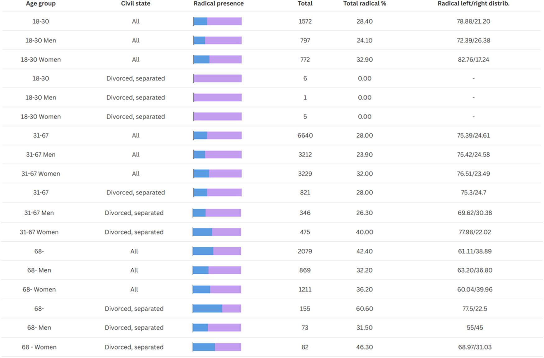 | For cohort ideological self-location = Radical | 0.880 | 0.804 | 0.964 |