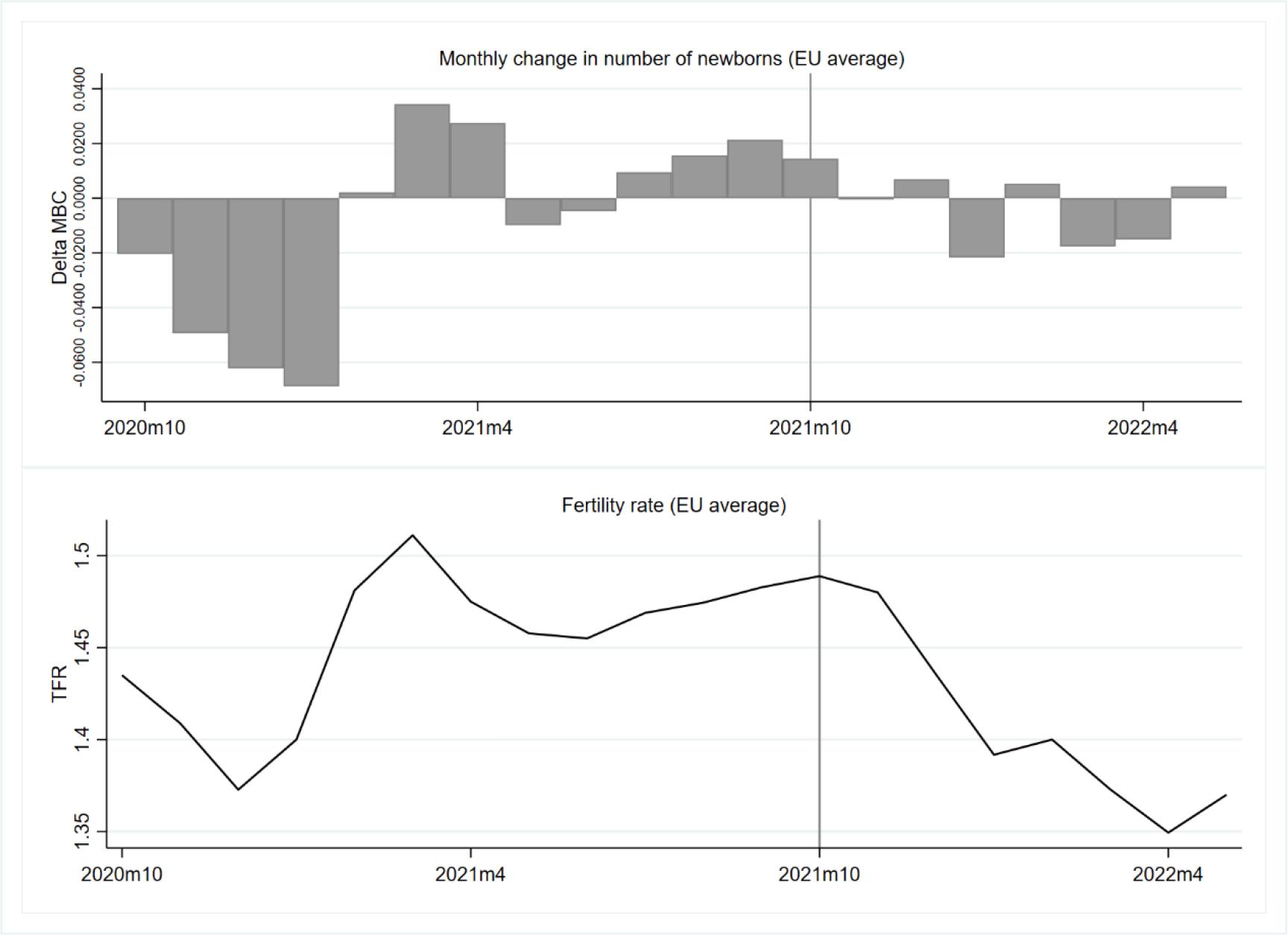 Monthly Changes in the Average Number of Newborns and Fertility Rates in EU Countries from October 2020 to June 2022, Compared with the Same Months Before the COVID-19 Pandemic