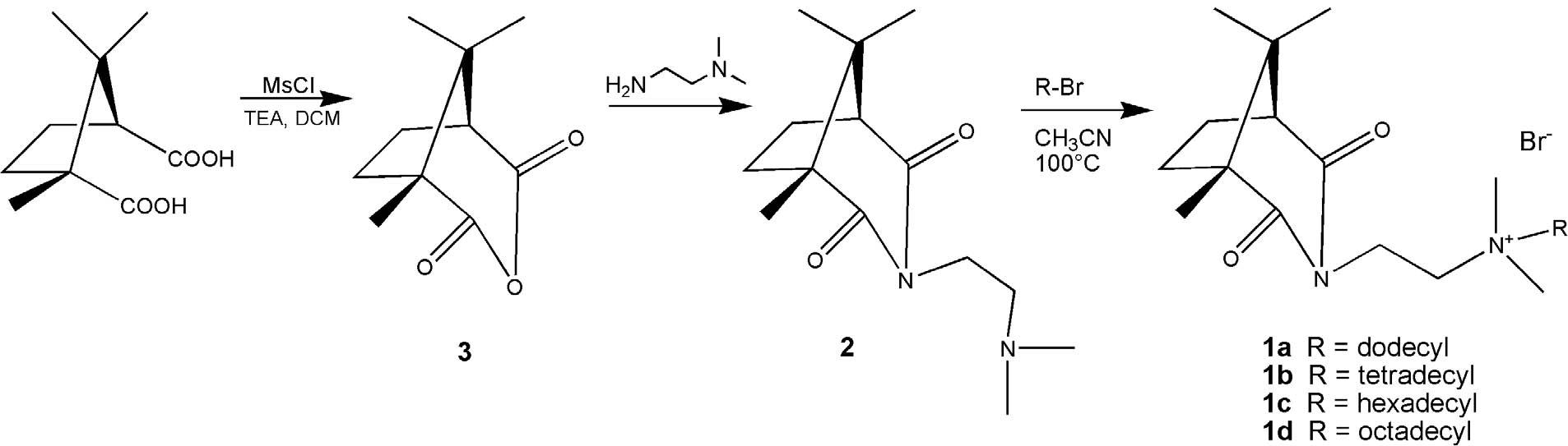 /cm−1: 2919, 2849, 1723, 1668, 1469, 1373, 1344, 1331, 1179, 989, 927, 822, 7231H NMR (300 MHz, CDCl3) δ: 0.89 (t, 3H, J = 6.45 Hz), 0.96 (s, 3H), 0.99 (s, 3H), 1.21 (s, 3H), 1.27 (s, 15H), 1.38 (s, 4H), 1.74–2.12 (m, 8H), 2.19–2.33 (m, 1H), 2.76 (d, 1H, J = 6.45 Hz), 3.52 (s, 6H), 3.59–3.70 (m, 4H), 4.11 (t, 2H, J = 7.62 Hz)13C NMR (75 MHz, CDCl3) δ: 13.9; 14.2; 19.5; 21.9; 22.7; 22.8; 25.1; 26.2; 29.3; 29.4 (2C); 29.5; 29.7 (4C); 31.9; 32.9; 34.0; 44.7; 51.8 (2C); 54.6; 56.2; 60.0; 64.1; 176.0; 178.3 |