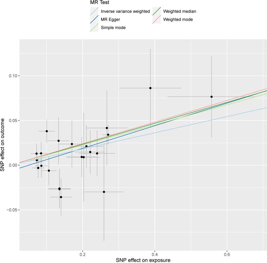To ascertain genetic variants as suitable instrumental variables (IVs), three foundational assumptions must be fulfilled: (I) the genetic variant should be associated with the exposure, (II) the genetic variant must not be linked with any known or unknown confounders, and (III) the genetic variant should influence the outcome solely through the exposure, not via alternative pathways. For assumption II, the most common approach is to use PhenoScanner (http://www.phenoscanner.medschl.cam.ac.uk/) to examine all SNPs, then exclude those that violate assumption II, and reanalyze the remaining SNPs to prevent horizontal pleiotropy. However, Cho et al. have recently developed a framework named MR-TRYX that utilizes horizontal pleiotropy to identify potential risk factors for diseases. They note that outlier removal methods might introduce bias or increase the rate of type I errors. The applications of MR-TRYX include two goals: firstly, to identify factors that may influence the outcome independently of the exposure, using outliers from the original exposure-outcome analysis; and secondly, to reestimate the original exposure-outcome association by adjusting for outlier SNPs and the horizontal pleiotropic pathways they introduce [14]. The authors reanalyzed some previous studies. For instance, several MR studies have examined the inflated effect of urate on coronary heart disease (CHD), which seemed to be affected by pleiotropy [29, 30]. Researchers found a more substantial causal association between urate and CHD after removing outliers, but this was accompanied by a doubling of heterogeneity. The adjusted scatter plot showed that outliers moved closer to the fitted line after controlling for the SNP effect on candidate traits. Thus, the authors believe that outlier removal may solidify evidence that could lead to incorrect conclusions. In terms of education and health outcomes, the relationship between education and health is well-established in the social sciences. It is generally believed that in high-income countries, higher socioeconomic status leads to a reduced risk of obesity [31, 32]. The authors used 59 independent genetic instruments to estimate the effect of years of schooling on body mass index (BMI) [33, 34], and all MR methods indicated a positive causal effect of education on BMI. Three outliers identified in this analysis were rs6882046, rs4800490, and rs8049439, which were pinpointed as major sources of heterogeneity. Although a 48% reduction in heterogeneity was observed when removing outliers, the authors noted that rs4800490 deviated from the fitted line after adjusting for pleiotropic pathways in the scatter plot. This indicates that if the outlier is caused by a pleiotropic pathway, then the estimation of its indirect effect is inaccurate (e.g., when GWAS summary statistics cannot identify other influential pleiotropic pathways). Therefore, we included all SNPs in our analysis, acknowledging that this could introduce some heterogeneity, but it is beneficial for achieving a more comprehensive set of results.