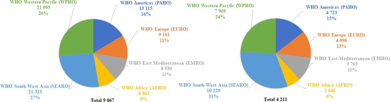 | WHO Western Pacific | 40.6 % | 59.4 % | 43.1 % | 56.9 % |