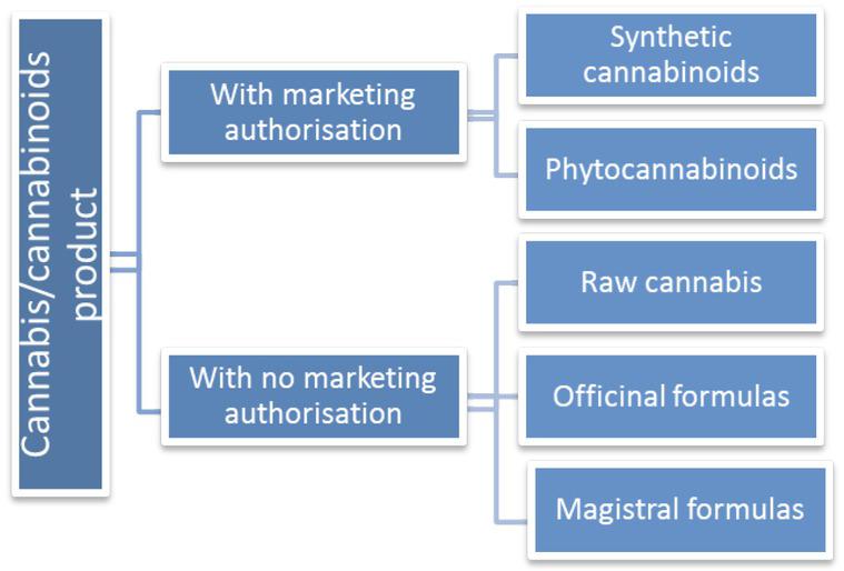 | Nabiximols | Extract of cannabis: | Bulgaria | Muscle spasm in multiple sclerosis | 1, 24 |