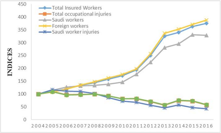 The distribution of establishments, insured workers, occupational deaths, and injuries in Saudi Arabia between 2004 and 2016