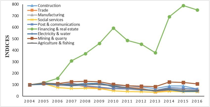 | Economic sector | 2004 | 2005 | 2006 | 2007 | 2008 | 2009 | 2010 | 2011 | 2012 | 2013 | 2014 | 2015 | 2016 |