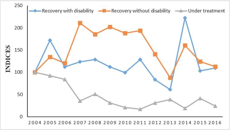 | Recovery disability without | 34.1 | 42.0 | 42.2 | 73.4 | 63.7 | 74.9 | 79.7 | 81.9 | 68.4 | 53.4 | 74.7 | 59.3 | 67.6 | 2.1 |