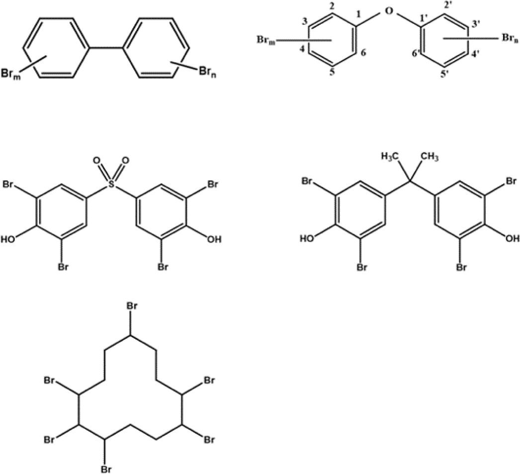 PBBs, PBDEs, TBBPA, TBBPS, and HBCD structure