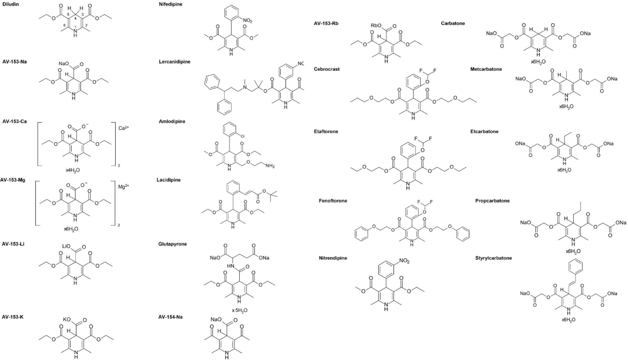 We also demonstrated that 1,4-DHP derivatives, more specifically AV-153 salts, can bind to the G-quadruplexes (G4), with Na and K salts effectively binding to the human telomere repeat (18). Other authors confirmed G-quadruplex binding with a series of other novel 1,4-DHP derivatives (23).