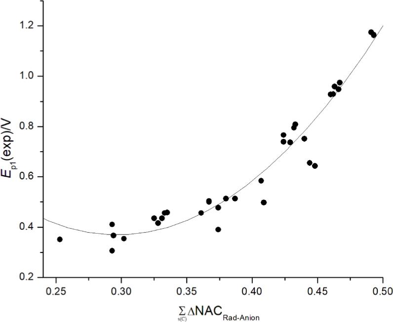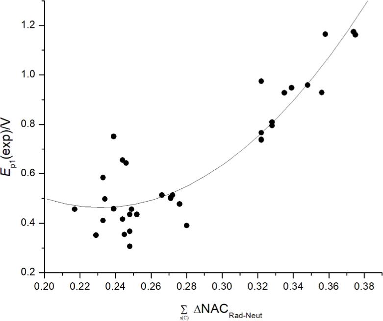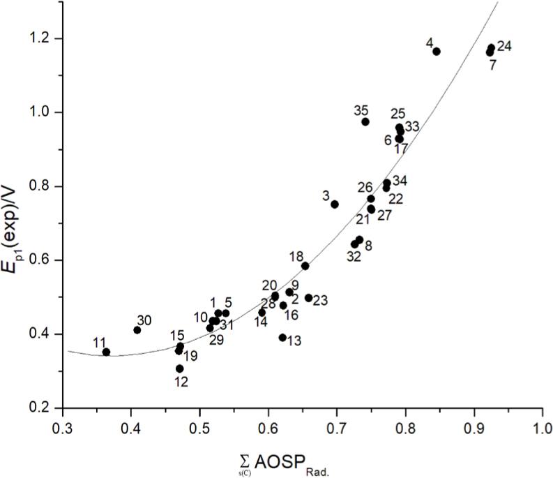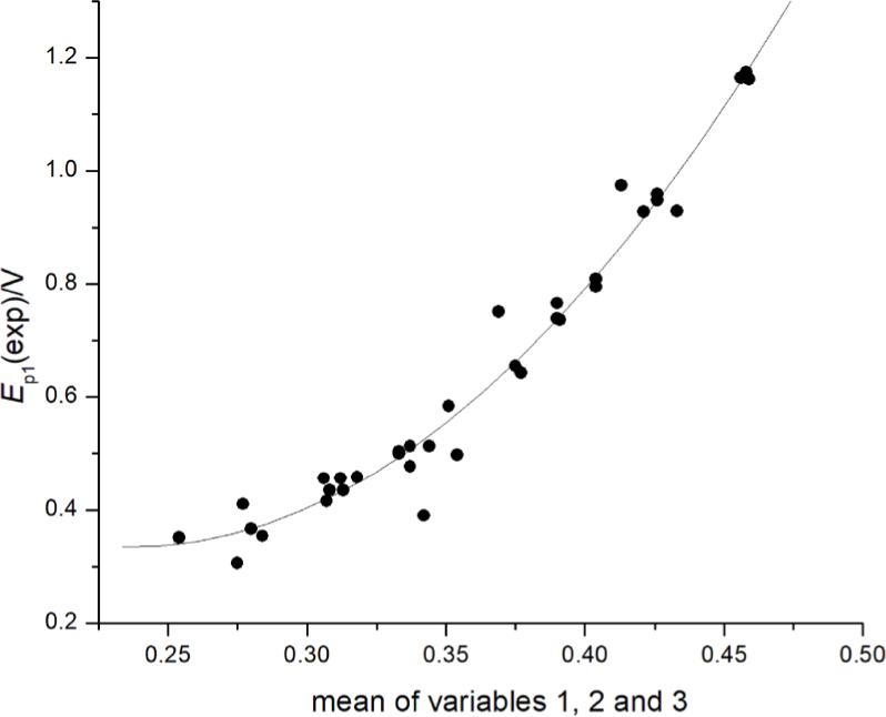 Quadratic regression models (Ep1 = ax2 + bx + c) for the estimation of Ep1 based on ∑s(C)AOSPRad, ∑s(C)ΔNACCat-Neut (var_ 1), ∑s(C)ΔNACRad-Anion (var_ 2), ∑s(C)ΔNACRad-Neut (var_ 3) and the mean of variables 1, 2, and 3_