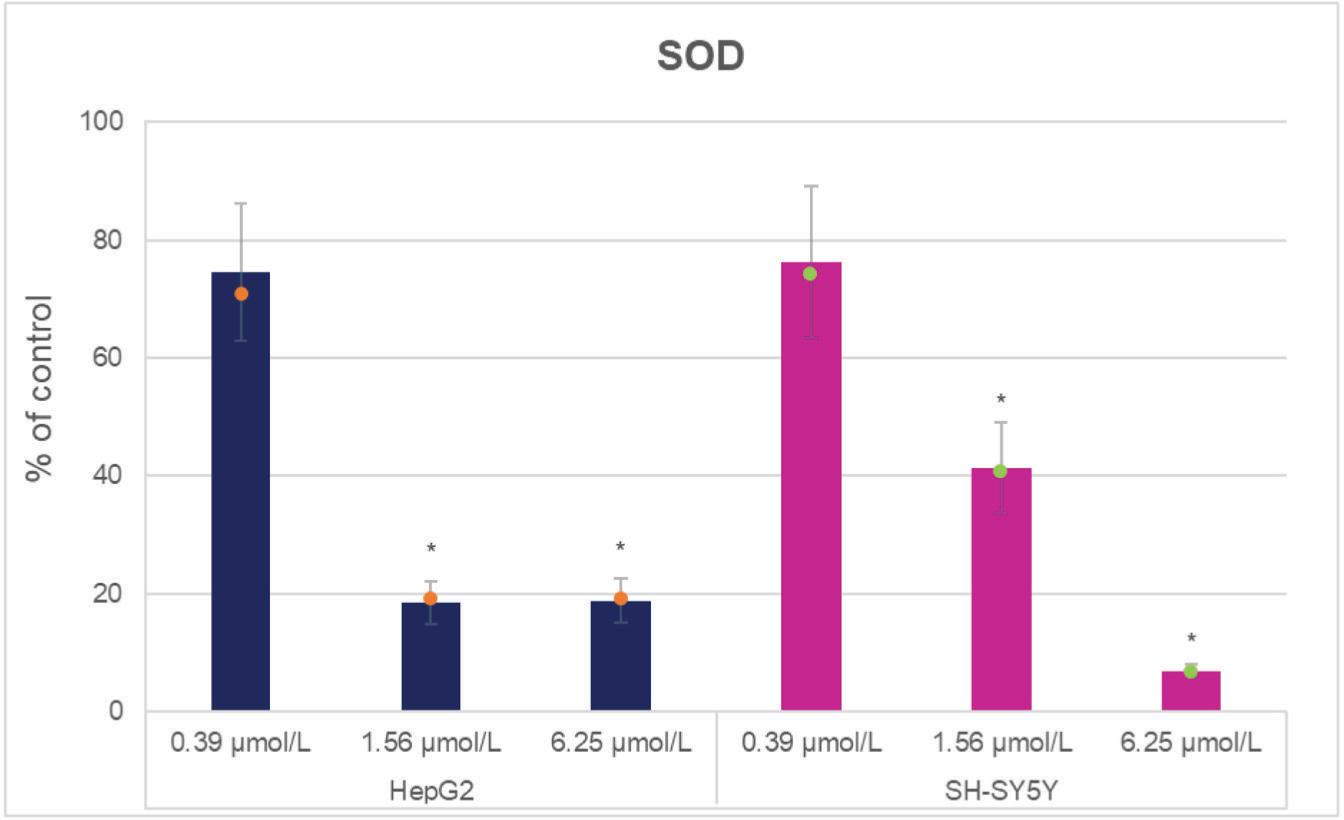 ![Changes in superoxide dismutase (SOD) levels in HepG2 and SH-SY5Y cells exposed to ketamine for 24 h relative to control [ketamine concentrations correspond to concentrations found in human plasma relevant upon analgesia (0.39 µmol/L), anaesthesia (6.25 µmol/L), and drug abuse (1.56 µmol/L)]. Results are expressed as means ± SD and medians. *P<0.05 vs control (Kruskal-Wallis one-way analysis)](https://sciendo-parsed.s3.eu-central-1.amazonaws.com/649c229f8e9d9f5e3449355f/j_aiht-2023-74-3727_fig_007.jpg?X-Amz-Algorithm=AWS4-HMAC-SHA256&X-Amz-Content-Sha256=UNSIGNED-PAYLOAD&X-Amz-Credential=ASIA6AP2G7AKJ3K2SJEH%2F20260306%2Feu-central-1%2Fs3%2Faws4_request&X-Amz-Date=20260306T114249Z&X-Amz-Expires=3600&X-Amz-Security-Token=IQoJb3JpZ2luX2VjEBoaDGV1LWNlbnRyYWwtMSJIMEYCIQCuN8LPWtglfi0kN0770TWYEfpwojgwpK2Pgne7W1Y4IwIhAJsR%2Fh1vkclCQAecjz%2BEEa%2BPUGNA7WY4YstghtU%2F7TGhKsYFCOP%2F%2F%2F%2F%2F%2F%2F%2F%2F%2FwEQAhoMOTYzMTM0Mjg5OTQwIgyBdKhbQJOsByWCwX0qmgWDi3Pfy8bAAroLW8Uti7H%2FnoMB3gpUszwYg%2Fl64%2FXz3LfHw8NCp%2BWDwpOiEA6%2BrRJkaUFQg5NIFObAapI%2FQkZUfVVq%2FrnXBdsJ7Q%2FpHc0%2FRLAKcaNO0VIsD6yhw2IftMWMF6k802xn6Cs%2BUiWHXYdIYpPCVrqA92fjU9lnO95NNEvByeDWq17JW%2Fs6HVslQNUW2RSWwC2MvivPG69i8d71%2FGlGkBZq3TKjG14UrCdeSFNhLv5c95mPePjbkNw3ZtV19FJ1MIbNAsc0icDNMOA5%2FctE7gWXquS%2B8uuCmNDqI607fnQw3eq9uhfrfn9WWsAFVZAWFj80APqqirIKGgnP379rIj4mqwZj9tmyMJPRAZeDft6vyjOC5aSIvAhkvfxD9OqZPTE98gYsAWuHzOrSd6ovazvibLe2QnOlV3Ngmoc5fG9ucCJXT8J9wzqaTQkPeUalg52o4q6zCBY0%2BLE%2B%2BgIXk2bhv50N%2BQjWwKvR7XRh8If1ZDJq8YlEKeI%2Bx7upnU4Flnn2kjhedCDs4nCYjuuT4wUlNZLIMNDA3koMzrf4G6M2vi%2FG7g9JQ6qhPyfRtNp%2Bwk7HlnOmCL%2Fno79Lh3RRDswkxLrlM6leRqX8NH5ekaLIclLuPg0%2F8gCtcdicvW0TJEG2pvplnasd725Tn3T27uAOsdPVGk20GdVzmSTlj2jDnEQmdmWXW%2BmLpOLyyIeYssaCRvqc76j5zOhxHpWznk%2FTwcr5MFyMgxQTriGiastVqkywlNa0HG597sSvX46E4wBpRCgcFj8anm8fpeHodp7DlzPUBD5DfUGpjFA2nvUhs3W6Xbfm9IV4b%2BHrjmyhaNC%2BqI2hakgAH2%2BK2Vzz8QlXz4GG9y3yZ%2FRtcYF1mKqbq%2FKpLeYw68mqzQY6sAEnpRIqV0cHdgwNOYQ9ruDtRPWi71kwIURw0e5N9lWXnKGEtJGOmSNbELLlSwXGicvZ57za6laG2QMjlOQ5oIY4ca%2BKmb5vuL5MGGnMi8qhXmD4hD%2FPHrIQjJ5KJU2asAJDxOWdQmwfbhA8P6LPMlk0eGuV12XA5LyeGELcZFFWjc1ytCTwwwmzj%2B3EYj47EqHQIKHzKwjgxdLMEak6wsIJq4CN%2B5OiQ6yi0ome%2FeohFA%3D%3D&X-Amz-Signature=63f05bebd1b8408a60fb1a83ec64987375db8147b0ca28382b82271e08ef48a3&X-Amz-SignedHeaders=host&x-amz-checksum-mode=ENABLED&x-id=GetObject)