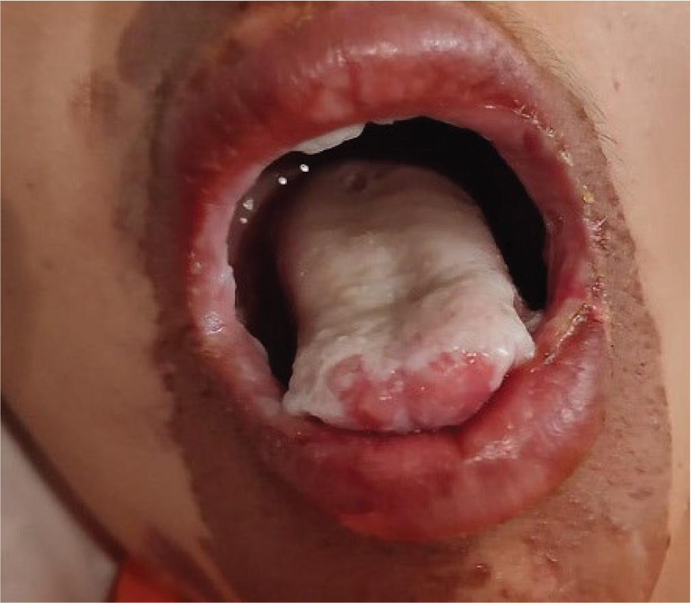 Corrosive damage of a child's tongue and face caused by accidental drinking of white vinegar