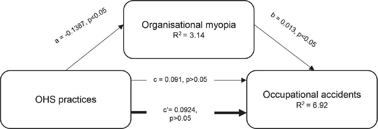| OHS Practices → Organisational Myopia → Occupational Accident Risk | −0.0018 | 0.0029 | −0.0091 | 0.0031 | |||