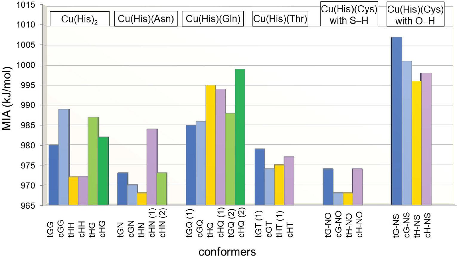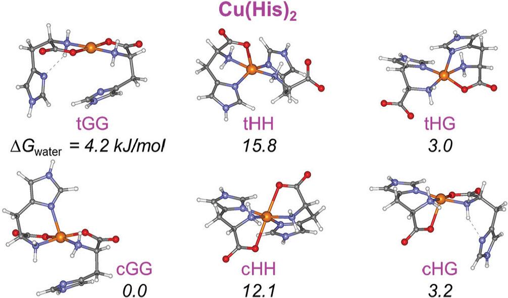 ![Metal ion affinity (MIA) values calculated for low-energy aqueous conformers of five Cu(aa)2 compounds obtained using the B3LYP-D3 functional and 6-311+G(3df,2p) basis set (see Table 2). [Cu(His)(Gln) and Cu(His) (Cys) values are based on two earlier reports (43, 44)]](https://sciendo-parsed.s3.eu-central-1.amazonaws.com/670262712d53850783963f94/j_aiht-2024-75-3871_fig_007.jpg?X-Amz-Algorithm=AWS4-HMAC-SHA256&X-Amz-Content-Sha256=UNSIGNED-PAYLOAD&X-Amz-Credential=ASIA6AP2G7AKINU65RA6%2F20260306%2Feu-central-1%2Fs3%2Faws4_request&X-Amz-Date=20260306T063414Z&X-Amz-Expires=3600&X-Amz-Security-Token=IQoJb3JpZ2luX2VjEBYaDGV1LWNlbnRyYWwtMSJHMEUCIQCzu%2B1OIUeWMfohocZ6IqIa0m0zyf3lWJxB1HRIS9WD5gIgZWxJii5CnW3%2FkO6W3aYx41PZA0n90B7zN5qEfoxZ9mMqxgUI3%2F%2F%2F%2F%2F%2F%2F%2F%2F%2F%2FARACGgw5NjMxMzQyODk5NDAiDCQtnQtb26%2Beh%2BpnsSqaBWM1FxL8R0scLvJGgEL3XnL69sp9S%2FSoSyhSf2LSuu2uFsSpeCb0BR%2Bv3rUTzi1Jlvla3uzqNIVINYP9lsTN2IMR7mVYsLKpp7sNd3PnqBSCncAx53JWo3zTa5vNDfkzxPkXwEgSCOP3ZePKq9%2FrveNYT9WLHfRD%2FuXiHfAaAeYSrCps%2BRH%2BCXXHy2lcU8EeFPndX0CR7iKQ6J3ICN4vJdd%2F9D75A%2FDynUCXSIVZ0MF%2FqSMSAtIws2H9TCCJueQ2V9lJT6xyQlPHE13d24%2Bga0NtgABA5263PwgMhYGCRtX5X0t%2FlrY1tCJemB8bq%2FiEtQ80vds%2BUg1dM08iz87CRmkyvZy%2FXBVEpoR2bQOt4T%2FfBeDcBbOhtgCDBAFbDD8tlld7kvPE6bR3w6%2F%2BSUT9YLVun94smdTOP3iUq7CAFNawa8VO7FHB9XlU7h1txzbJ9byX79Lg1idAX4bMdNjFLPa3Mj74%2Bm%2Fs1Jm6P%2FP1XKq1eJYG5T7W3rQNc1w1chl6j%2BceQr2afhaqEmbsBNM3OyPeBs%2FmpmImf%2Fv0qN7%2FEFfDmRKcdBkTMU%2FXiKWx412iEmnkNA6%2FuwxoxPBBe03pcHgLkRfi9inxAz0Kned1ZVSzAyiDntNsxDQNK6F91LNp9NuKpQJkuwLcUALl%2B80NhNAHUs7SXrJIwJWBy1qtqwVA4IjXuEj2hi7ssoiq2lJEK%2B%2BFnloZh0%2B0hDTv81PW26rUD9auXb016JwGi0P0airDjuxr%2BsbFYJbMXhWc%2FeMcDNDF%2F0r8HsMBBT1zZBGDaAIApzTU4xy7c8%2BTa7Rc5hwBraj443V9oJqmZKtm33kjg%2BWsb1gc6x%2BrKPVLl6KFMleO0aRegU%2F5CRsDAS9Pl21E%2FYxXTEELbWKUczCx0KnNBjqxAaeWVgy5%2FWbCbAcfpCoYYaDn9p22owyPzxcIm0GQyfYwtLvET6C8adn7%2FGXnhQ6Yr4z9gBCnOzNhO4mJfEzldcHkZohjsjWiZ65x6ff%2FfsUs9B8rwYlcp3BfER%2BwZySNjQg1WWBD3KR2l5rHZ026UjYqwrFl456F%2FkdclKCrjLOtQpOZbeOCKElFqvBFjJC0wIAxSqjvqi%2FpA1%2FT79xoxf%2BO4Qg8HJI5cKwh5OISW5D%2FKw%3D%3D&X-Amz-Signature=e4507ee28952b1073b6a01274d66f33324b525389f53944fc23fbea521c421d3&X-Amz-SignedHeaders=host&x-amz-checksum-mode=ENABLED&x-id=GetObject)