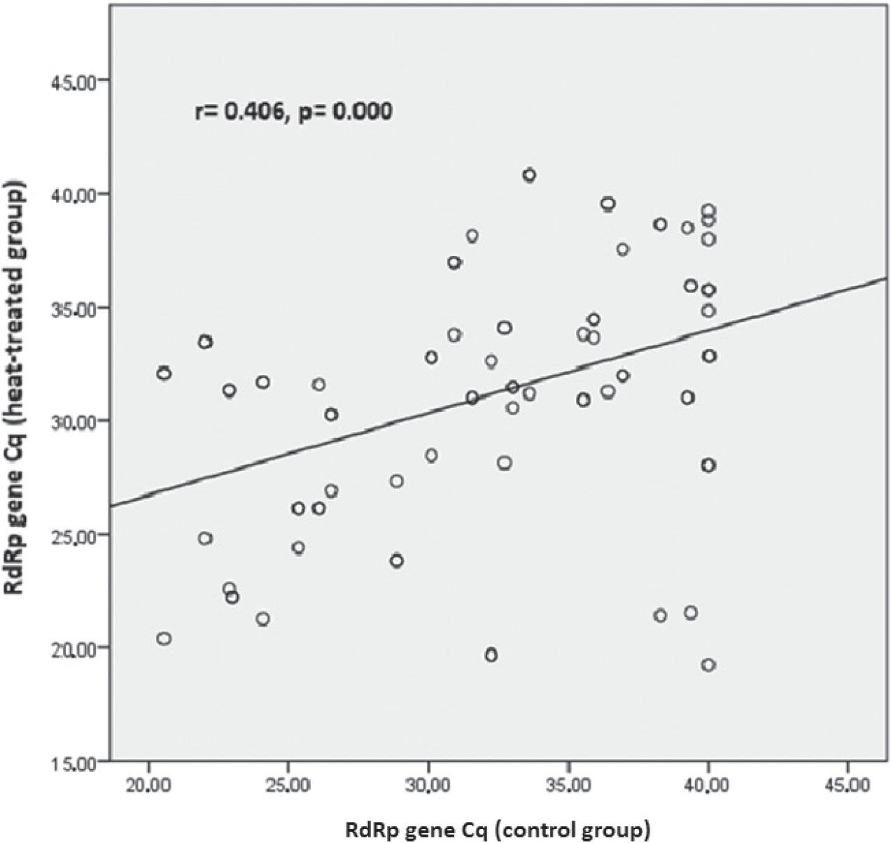 | RdRp gene (heat-treated batch) (n=41) | 30.15 (28.76–31.54) | ||