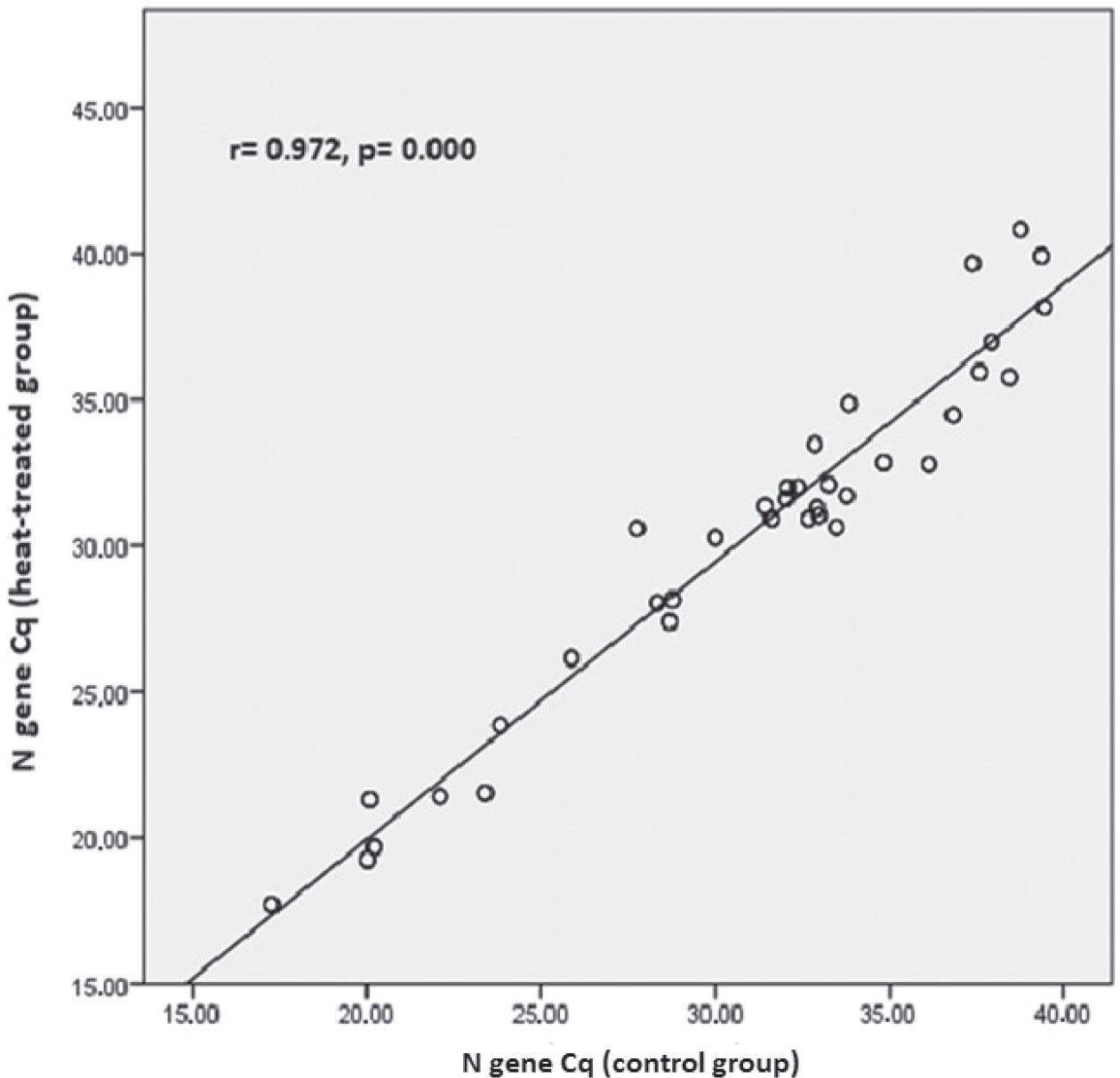 | N gene (heat-treated batch) (n=50) | 34.59 (33.93–35.25) | ||