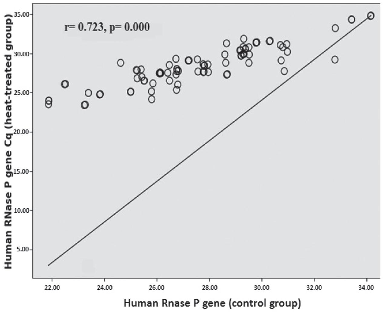 | human RNase P gene (heat-treated batch) (n=110) | 28.16 (27.66–28.65) | ||
