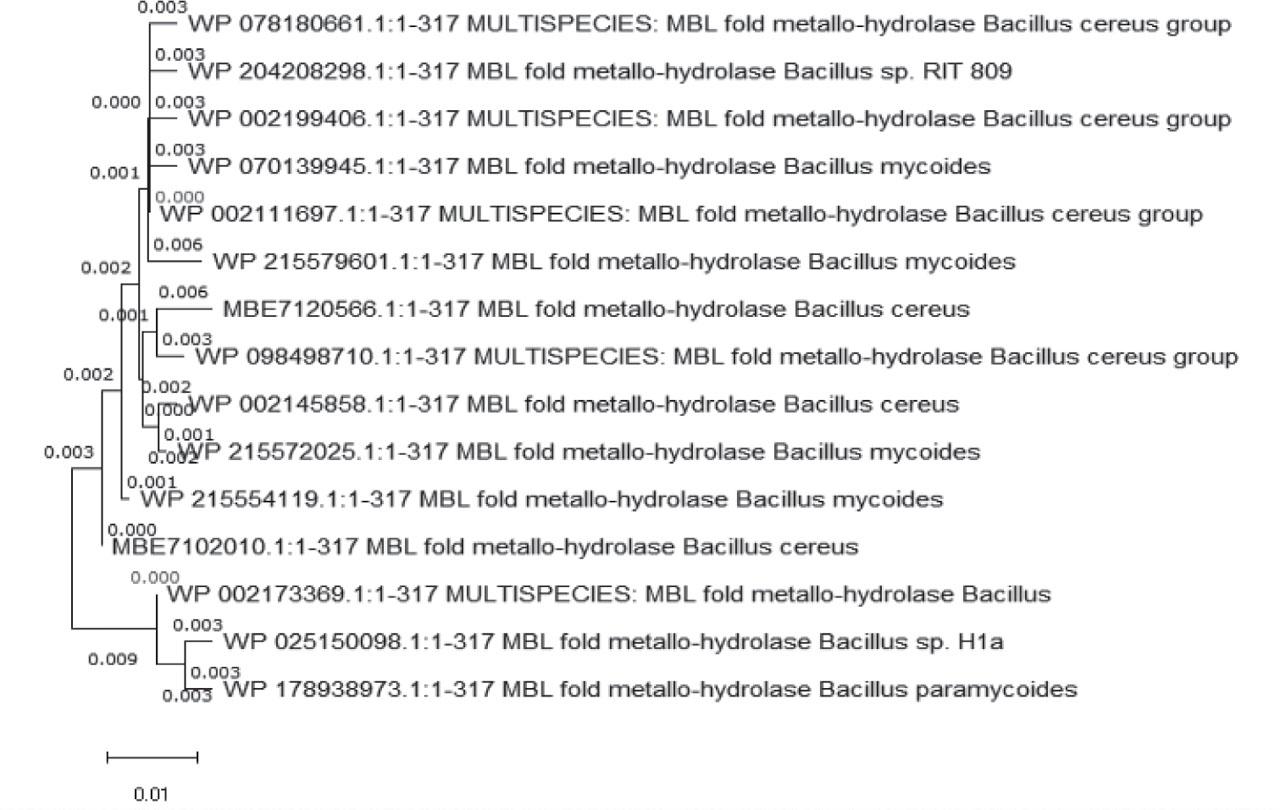 | Metallo-ß-lactamase fold metallo-hydrolase by species | Accession number | Amino acid substituted | Mutation position | Amino acid replaced with | I-mutant results | MU-PRO result | PHD-SNP results | SIFT results |