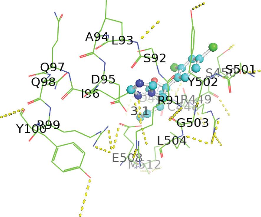 | Pollutants | Docking energies (kcal/mol) | Amino acid residues | Distance between interacting amino acid residues (Å) | Type of bond interaction |