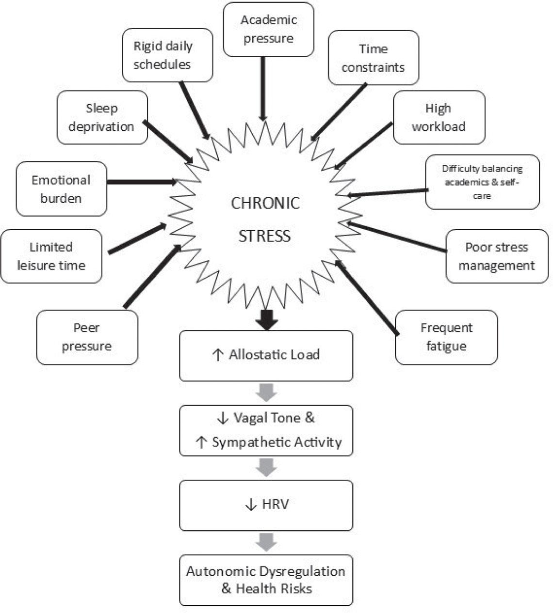 | HRV variable correlations with LBQ-20 score | Weak and statistically non-significant | Lifestyle hinders health | In contrast to reported healthy behaviours, autonomic function remains largely unaffected. This suggests dominant influence of chronic stress and academic strains on autonomic function. |