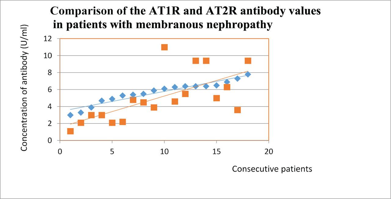 | Median AT2R antibody levels (U/mL) | Mean AT2R antibody levels (U/mL) | |