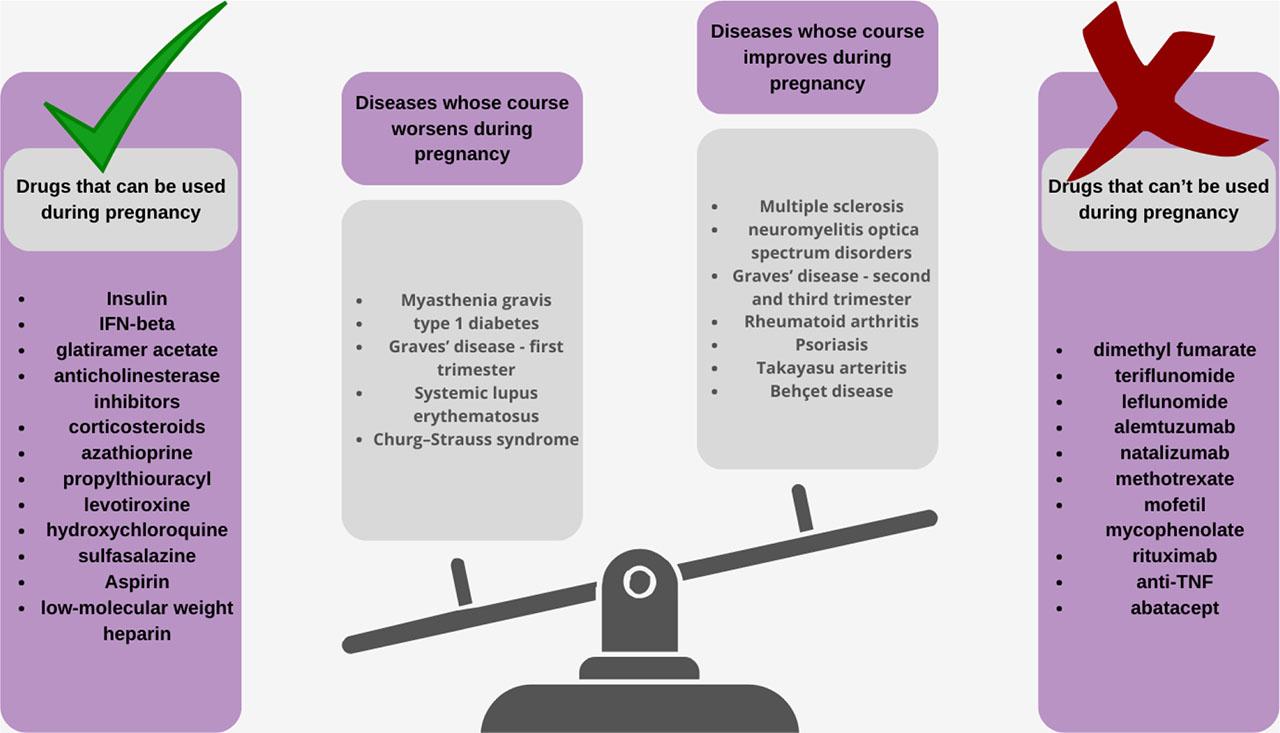 Medications used and contraindicated during pregnancy for autoimmune diseases and related conditions