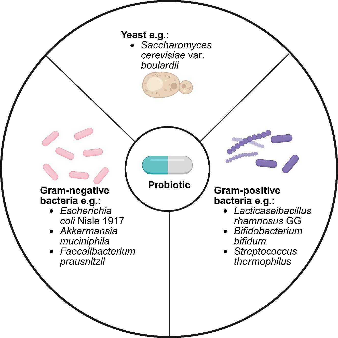 Classification of microorganisms constituting probiotics with representative examples. Created in BioRender.