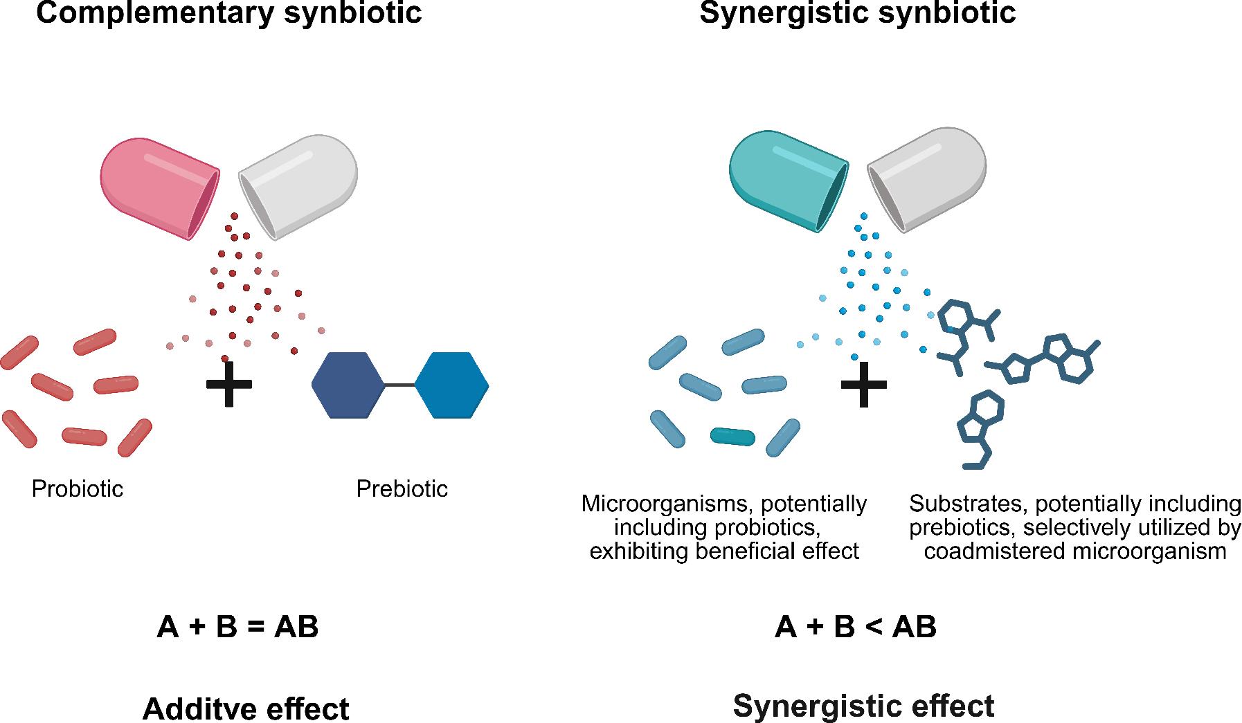 Comparative characteristics of complementary and synergistic synbiotics. Created in BioRender.